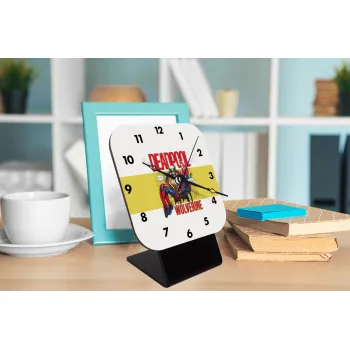 Superhero Deadpool Wolverine, Επιτραπέζιο ρολόι ξύλινο με δείκτες (10cm)