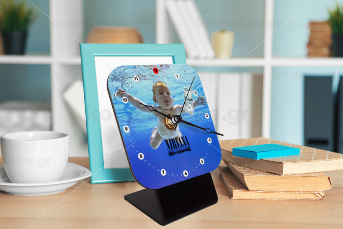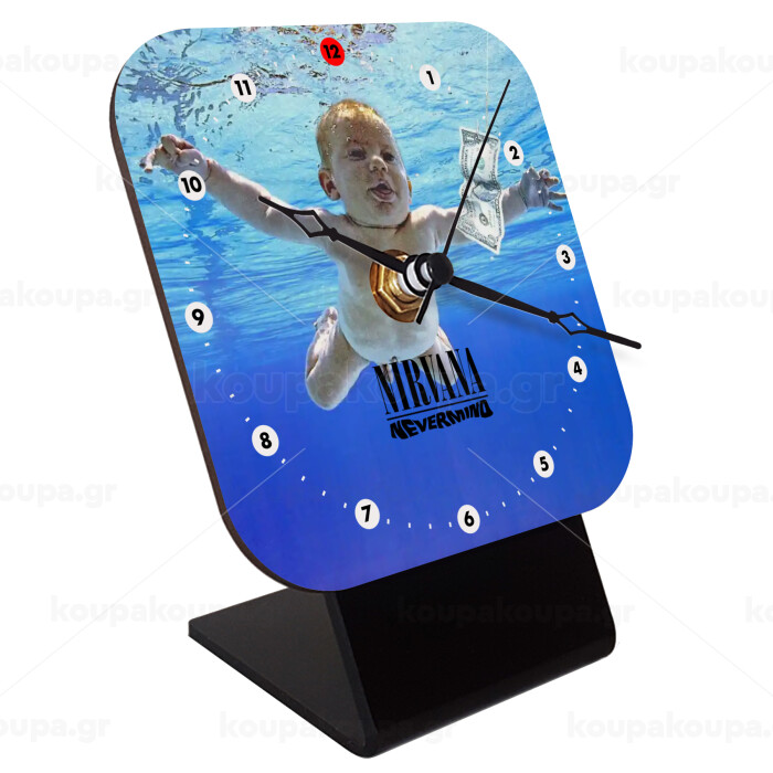 Nirvana nevermind, Επιτραπέζιο ρολόι ξύλινο με δείκτες (10cm)