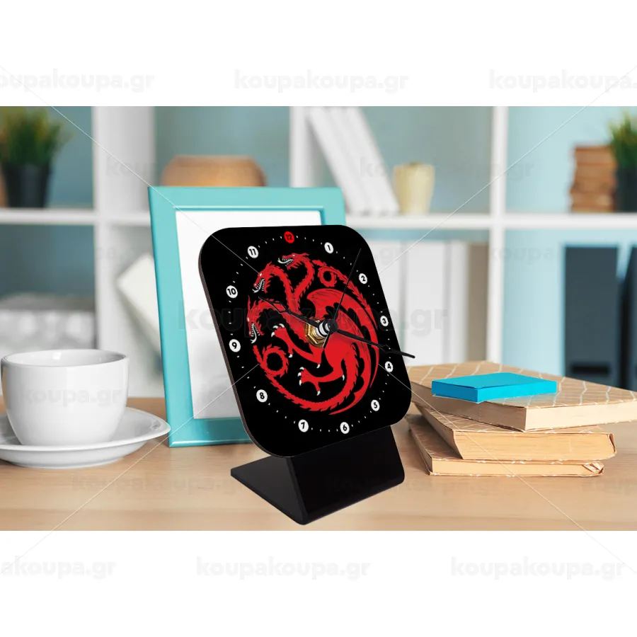 GOT House Targaryen, Fire Blood, Επιτραπέζιο ρολόι ξύλινο με δείκτες (10cm)