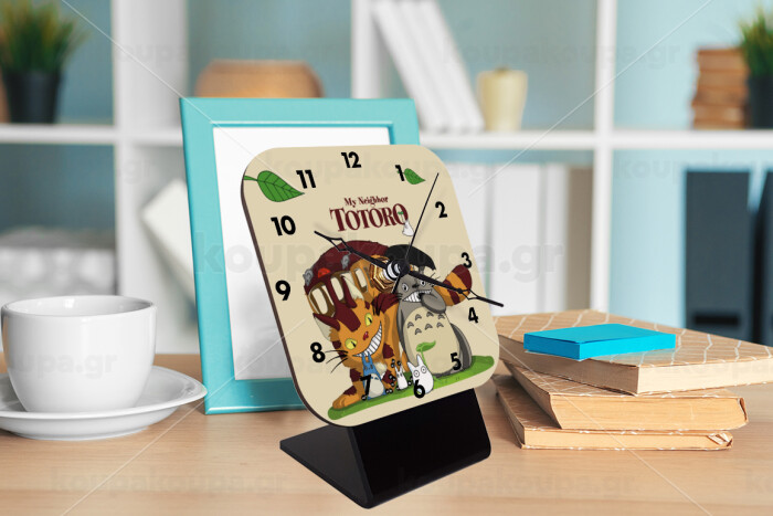 Totoro and Cat, Επιτραπέζιο ρολόι ξύλινο με δείκτες (10cm)