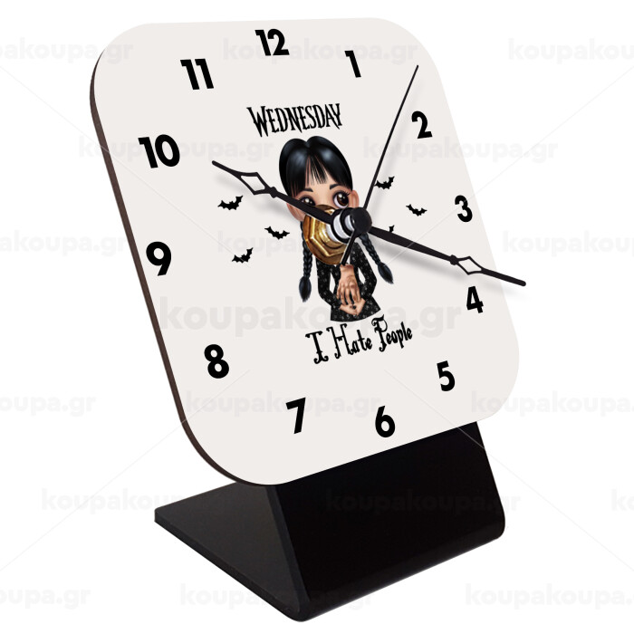 Wednesday Adams, i hate people, Επιτραπέζιο ρολόι ξύλινο με δείκτες (10cm)