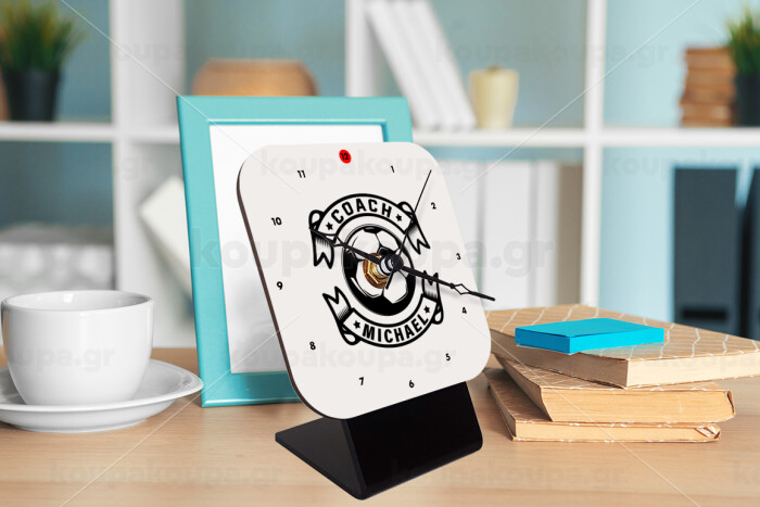 Soccer coach, Επιτραπέζιο ρολόι ξύλινο με δείκτες (10cm)