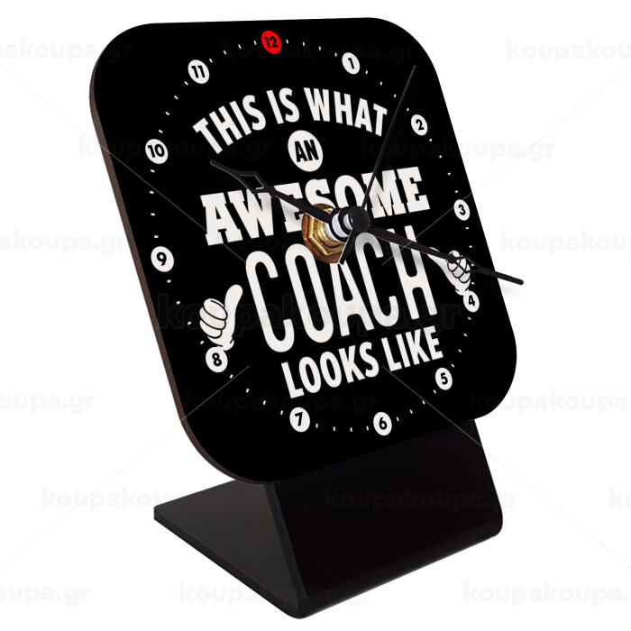 This is what an awesome COACH looks like!, Επιτραπέζιο ρολόι ξύλινο με δείκτες (10cm)