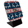 Χριστουγεννιάτικο πλεκτό ελάφια μπλε, Επιτραπέζιο ρολόι ξύλινο με δείκτες (10cm)