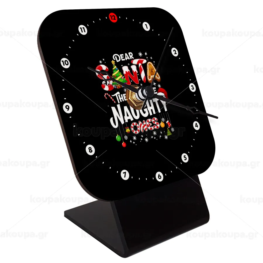 Dear santa they're the naughty , Επιτραπέζιο ρολόι ξύλινο με δείκτες (10cm)