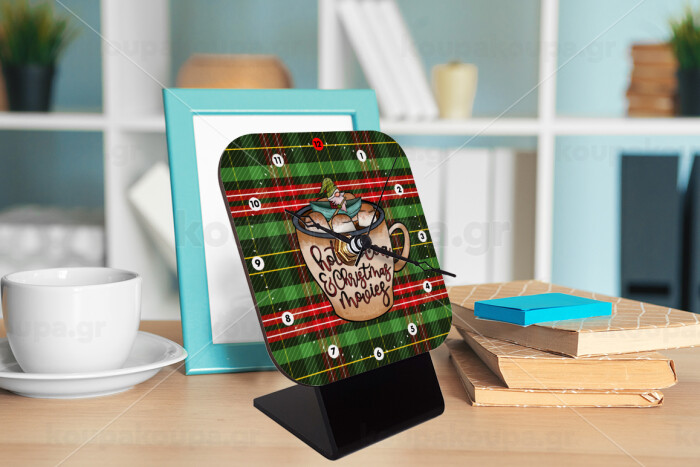 Hot Cocoa And Christmas Movies, Επιτραπέζιο ρολόι ξύλινο με δείκτες (10cm)