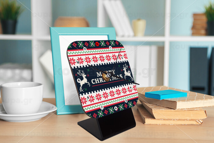 Merry Christmas Vintage, Επιτραπέζιο ρολόι ξύλινο με δείκτες (10cm)