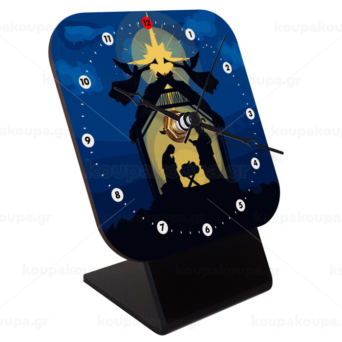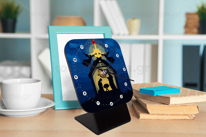 Η γέννηση του Ιησού φάτνη, Επιτραπέζιο ρολόι ξύλινο με δείκτες (10cm)