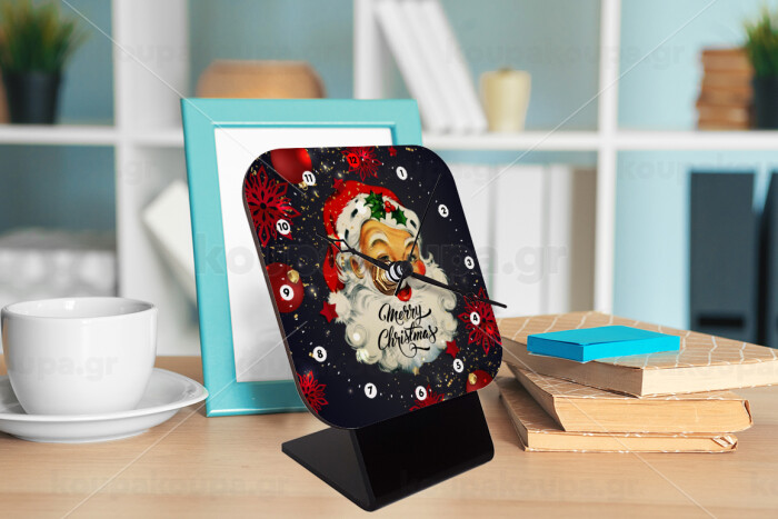 Santa vintage, Επιτραπέζιο ρολόι ξύλινο με δείκτες (10cm)