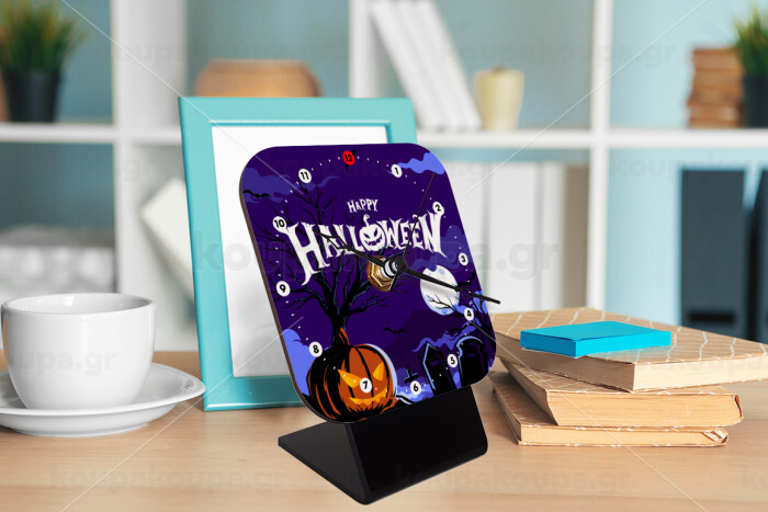 Happy Halloween cemetery, Επιτραπέζιο ρολόι ξύλινο με δείκτες (10cm)