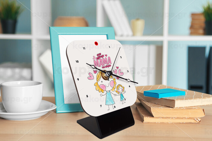 Στην καλύτερη μαμά του κόσμου, comic, Επιτραπέζιο ρολόι ξύλινο με δείκτες (10cm)