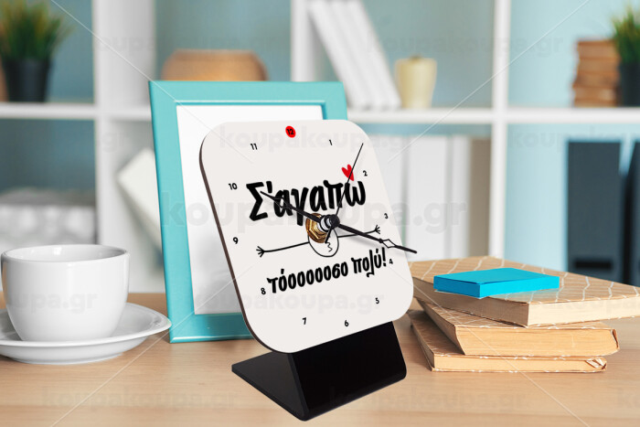 Σ΄ αγαπώ τόοοοοοσο πολύ!!!, Επιτραπέζιο ρολόι ξύλινο με δείκτες (10cm)