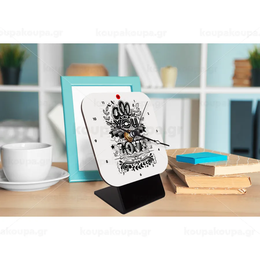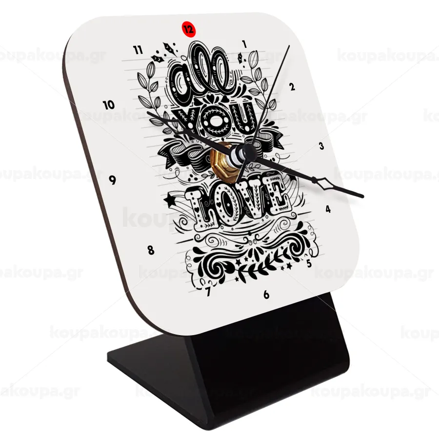 All you need is love, Επιτραπέζιο ρολόι ξύλινο με δείκτες (10cm)