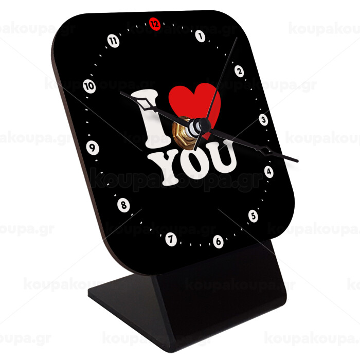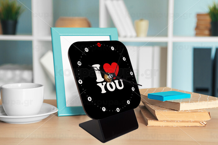 I LOVE YOU, Επιτραπέζιο ρολόι ξύλινο με δείκτες (10cm)