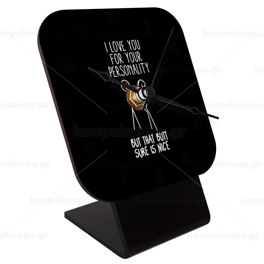 I Love you for your personality, Επιτραπέζιο ρολόι ξύλινο με δείκτες (10cm)