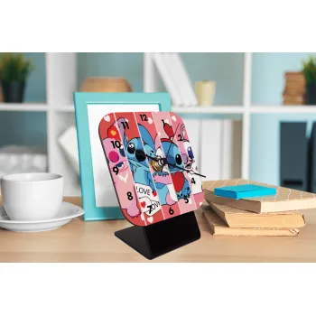 Lilo & Stitch Love, Επιτραπέζιο ρολόι ξύλινο με δείκτες (10cm)