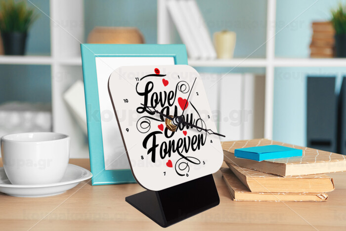 Love you forever, Επιτραπέζιο ρολόι ξύλινο με δείκτες (10cm)