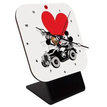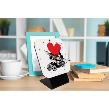 Mickey & Minnie love car, Επιτραπέζιο ρολόι ξύλινο με δείκτες (10cm)