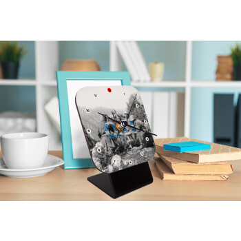 Επιτραπέζιο ρολόι Quartz από ξύλο. Το σετ περιλαμβάνει ρολόι και την βάση του ρολογιού, τον μηχανισμό και τις οδηγίες εγκατάστασης.
