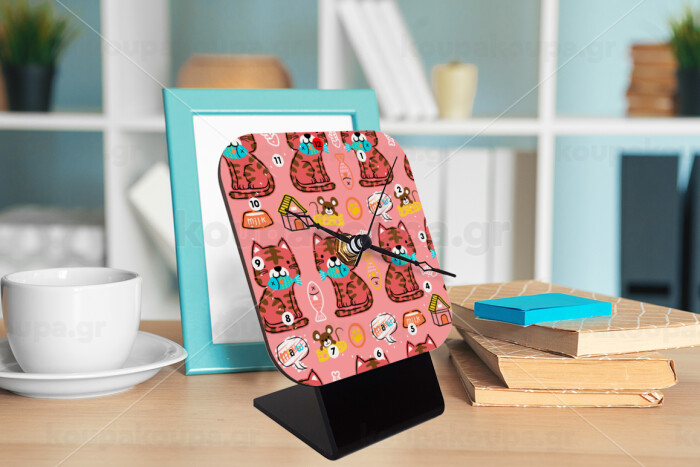 Cats and Fishes, Επιτραπέζιο ρολόι ξύλινο με δείκτες (10cm)