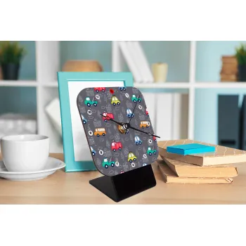 Hand drawn childish set with cars, Επιτραπέζιο ρολόι ξύλινο με δείκτες (10cm)