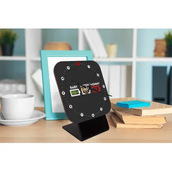 BABY, MOMMY, DADDY Low battery, Επιτραπέζιο ρολόι ξύλινο με δείκτες (10cm)