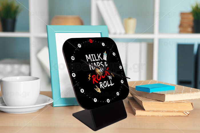 milk naps and Rock n' Roll, Επιτραπέζιο ρολόι ξύλινο με δείκτες (10cm)