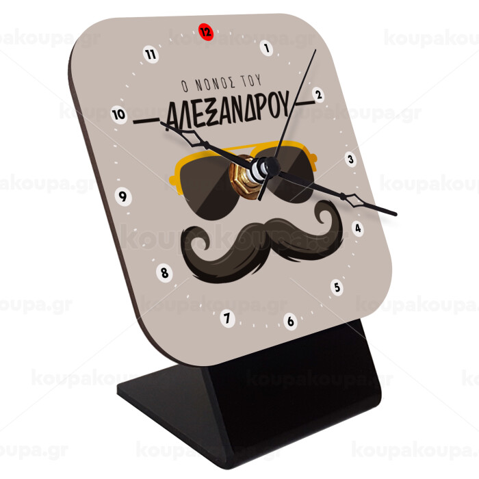 Ο νονός μου, μουστάκι με γυαλιά, Επιτραπέζιο ρολόι ξύλινο με δείκτες (10cm)
