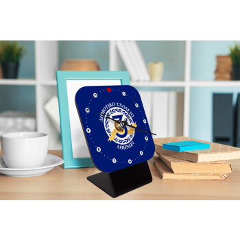 Έμβλημα Σχολικό μπλε, Επιτραπέζιο ρολόι ξύλινο με δείκτες (10cm)