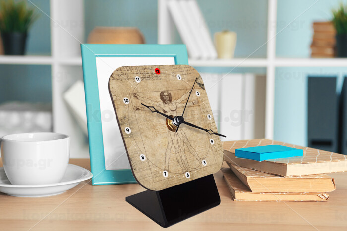 Leonardo da vinci Vitruvian Man, Επιτραπέζιο ρολόι ξύλινο με δείκτες (10cm)