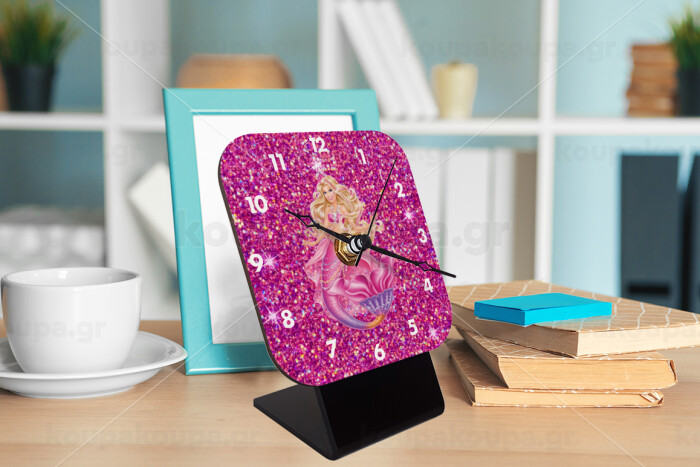 Barbie γοργόνα , Επιτραπέζιο ρολόι ξύλινο με δείκτες (10cm)