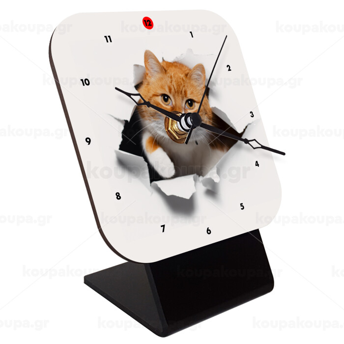 Cat cracked, Επιτραπέζιο ρολόι ξύλινο με δείκτες (10cm)