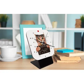 Cool cat, Επιτραπέζιο ρολόι ξύλινο με δείκτες (10cm)