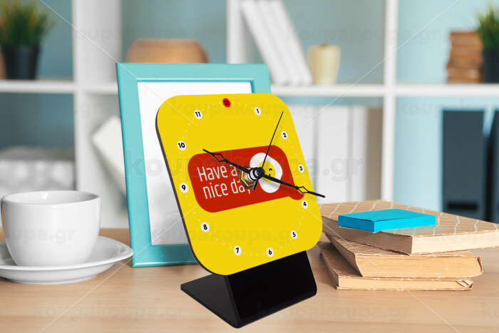 Have a nice day Emoji, Επιτραπέζιο ρολόι ξύλινο με δείκτες (10cm)