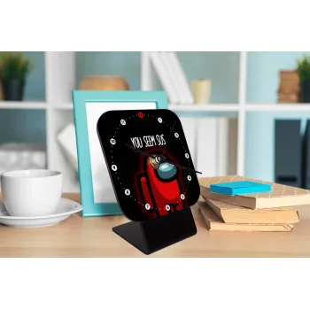Among US, you seem sus, Επιτραπέζιο ρολόι ξύλινο με δείκτες (10cm)