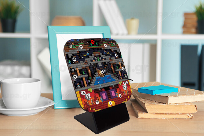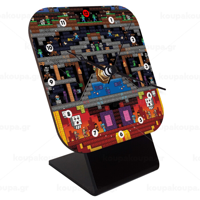 Minecraft 2D map, Επιτραπέζιο ρολόι ξύλινο με δείκτες (10cm)