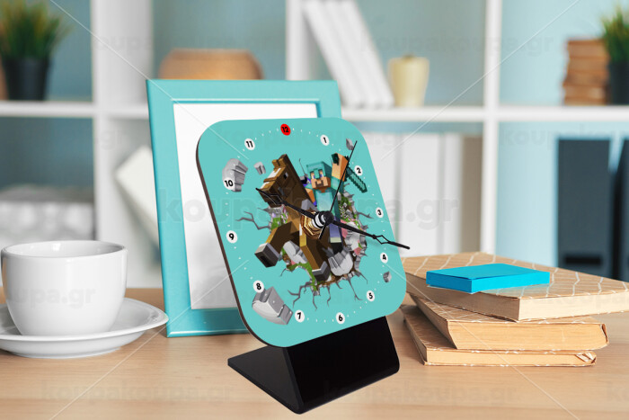 Minecraft brick, Επιτραπέζιο ρολόι ξύλινο με δείκτες (10cm)
