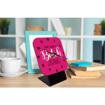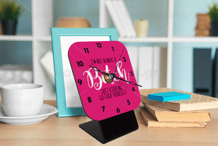 I'm not always a bitch, just kidding go f..k yourself , Επιτραπέζιο ρολόι ξύλινο με δείκτες (10cm)