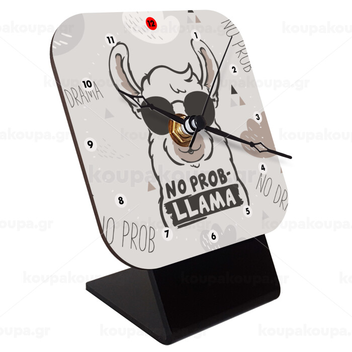 No Prob Llama, Επιτραπέζιο ρολόι ξύλινο με δείκτες (10cm)