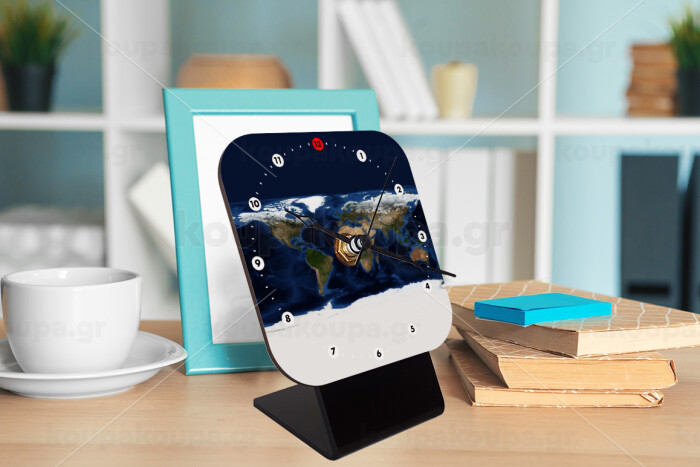Earth map, Επιτραπέζιο ρολόι ξύλινο με δείκτες (10cm)