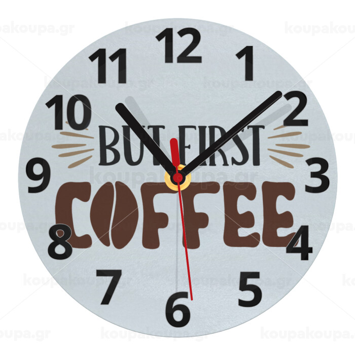 But first Coffee, Ρολόι τοίχου γυάλινο (20cm)