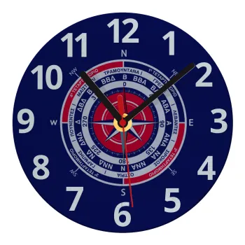 Ανεμολόγιο χάρτης πυξίδα ναυτικού, Ρολόι τοίχου γυάλινο (20cm)