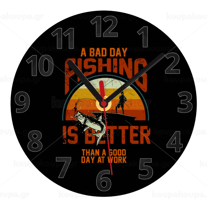 A bad day FISHING is better than a good day at work, Ρολόι τοίχου γυάλινο (20cm)