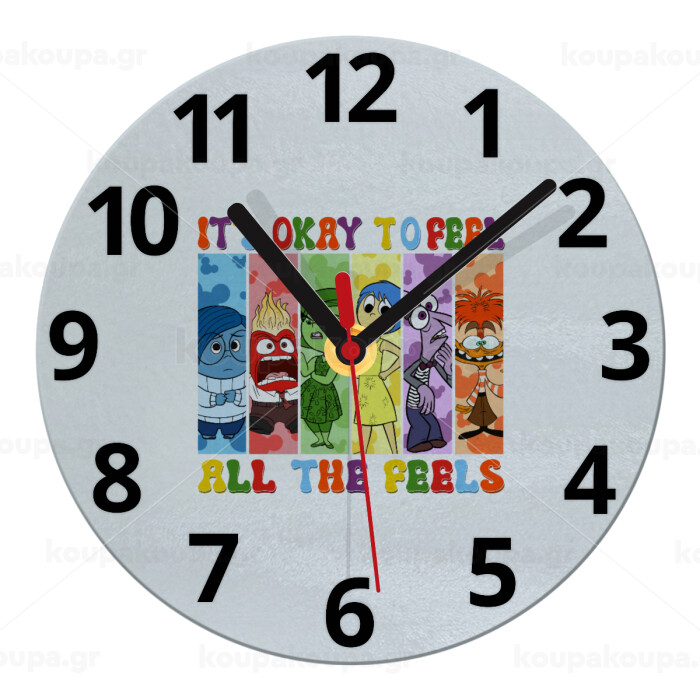 Inside Out It's Okay To Feel All The Feels , Ρολόι τοίχου γυάλινο (20cm)