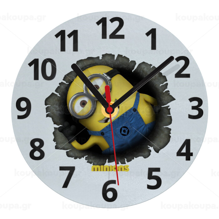 Minions hi, Ρολόι τοίχου γυάλινο (20cm)