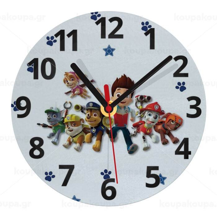 paw patrol, Ρολόι τοίχου γυάλινο (20cm)