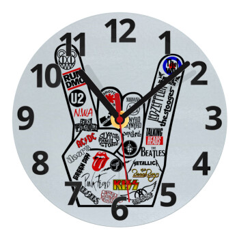 Best Rock Bands hand, Ρολόι τοίχου γυάλινο (20cm)