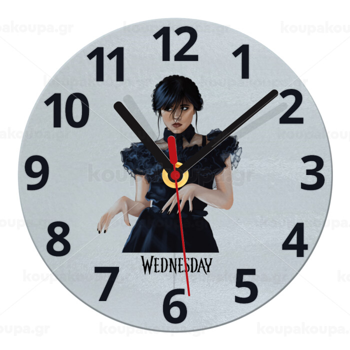 Wednesday Adams, dance with hands, Ρολόι τοίχου γυάλινο (20cm)