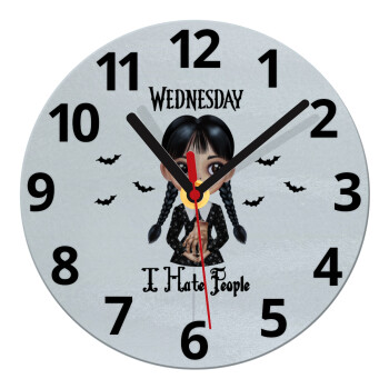 Wednesday Adams, i hate people, Ρολόι τοίχου γυάλινο (20cm)
