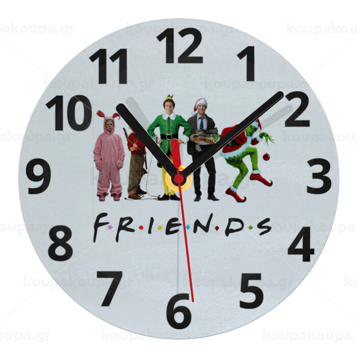 Christmas FRIENDS, Ρολόι τοίχου γυάλινο (20cm)